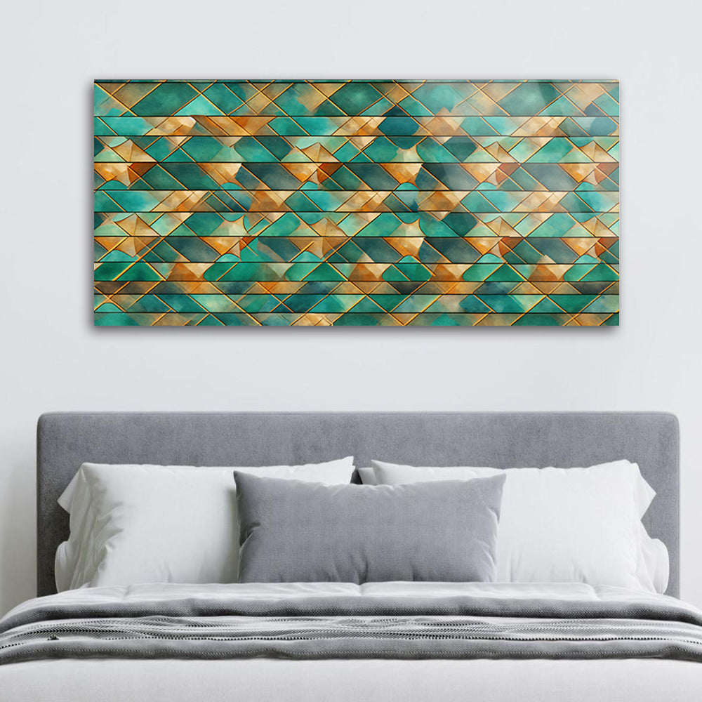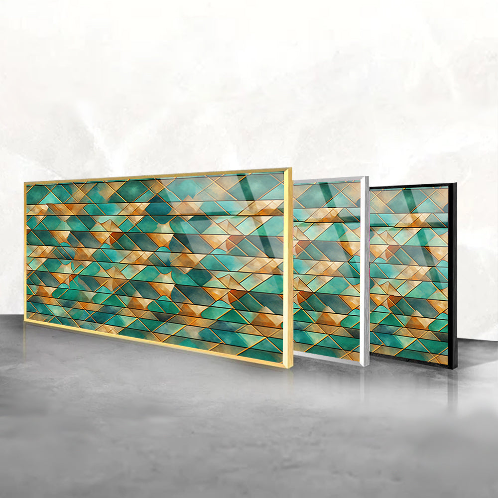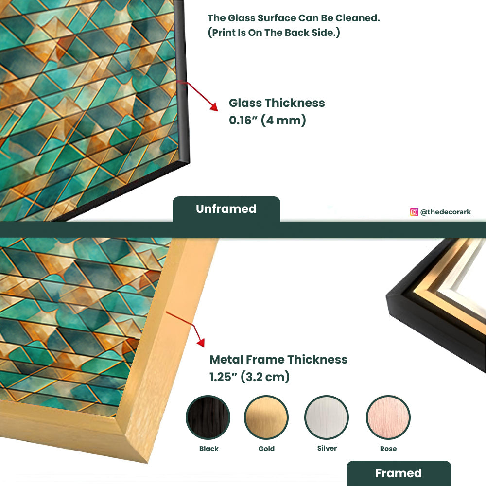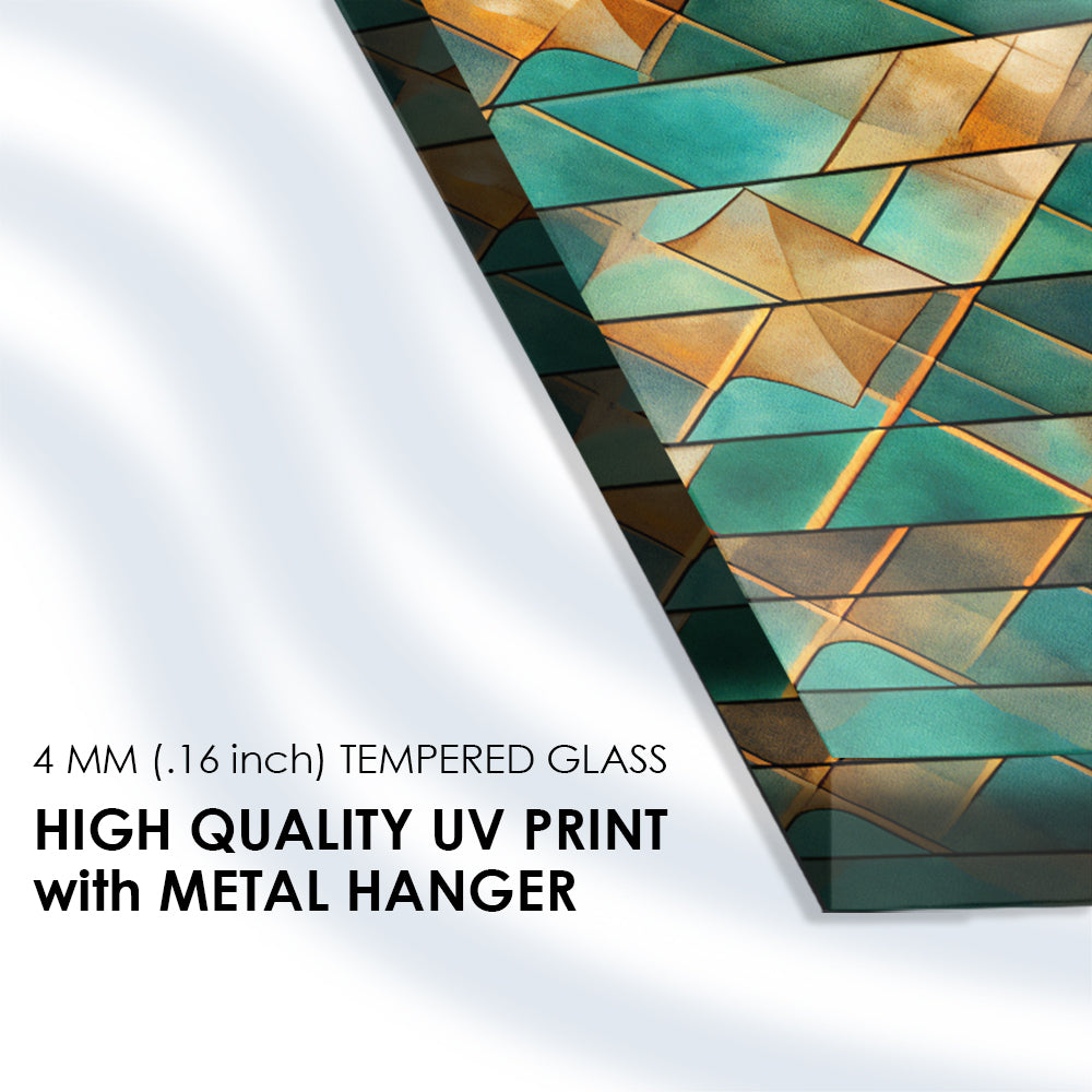 Elevate your space with the abstract sophistication of this tempered glass art. Inspired by geometric cloth textures, this artwork features intricate patterns and dynamic shapes that add depth and visual interest to any room. Add a touch of modern elegance to your decor with this captivating artwork.