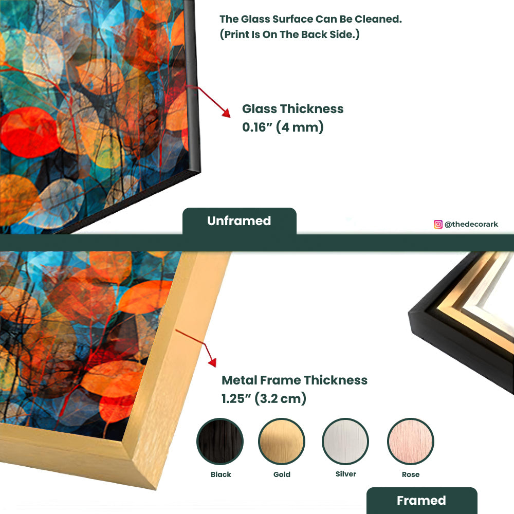 Immerse yourself in the abstract beauty of nature with this tempered glass painting. Its intricate patterns and organic textures create a sense of harmony and rhythm, adding a touch of artistic elegance to any room. Let the delicate beauty of this artwork enhance your decor with its natural charm.