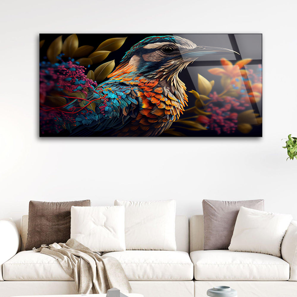 Bring the beauty of nature indoors with this tempered glass bird on branch art. Its lifelike portrayal of a bird perched on a branch evokes a sense of natural serenity and freedom, adding a touch of whimsical charm to any room. Let the spirit of nature take flight in your space with this captivating artwork.