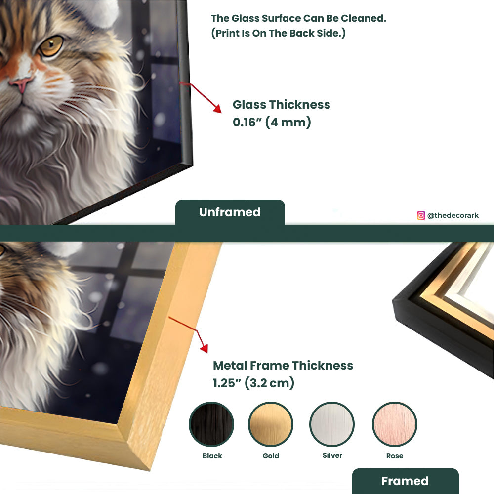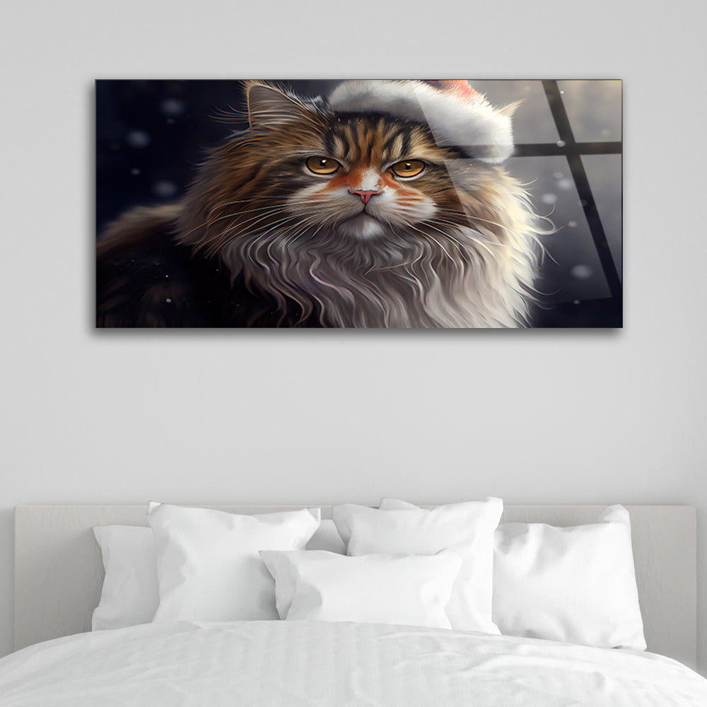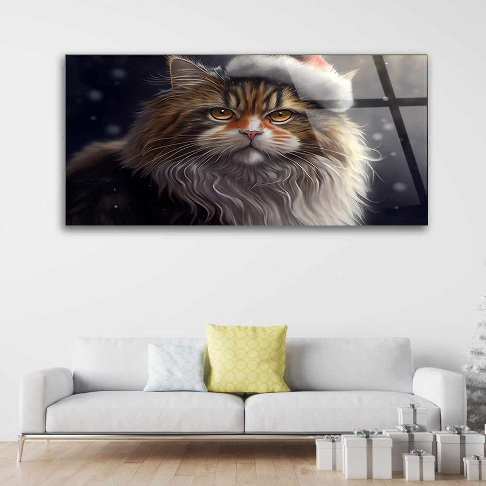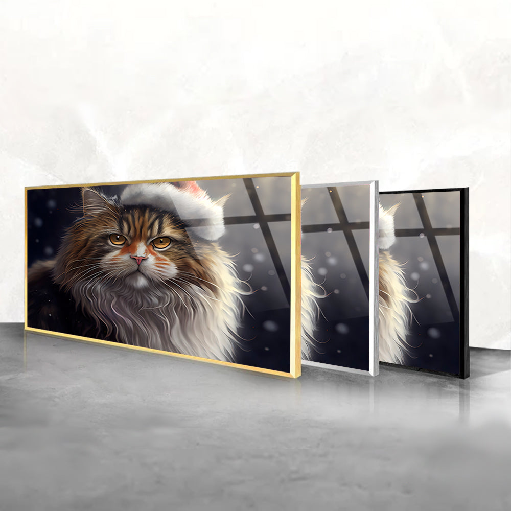Celebrate the festive spirit with "Black Cat with Christmas Wreath: Glass Festivity." This tempered glass masterpiece adds a touch of holiday charm to your walls, featuring a black cat adorned with a Christmas wreath. Crafted with precision, it captures the joy of the season, making it a delightful addition to your home decor. Elevate your space with this festive feline portrayal that brings a sense of warmth and celebration to your living area. Immerse yourself in the spirit of Christmas with this unique glass artistry.