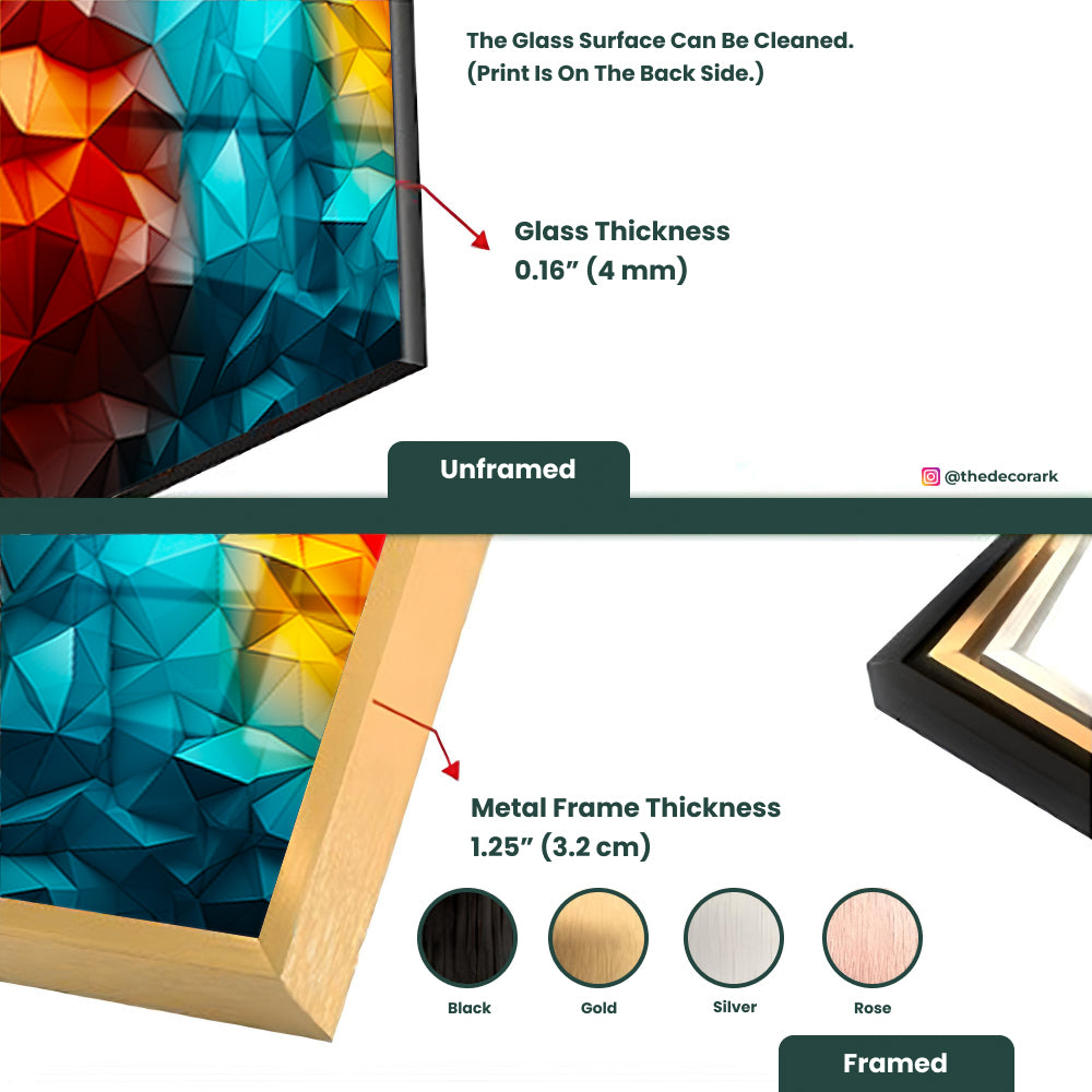 Elevate your space with the ethereal allure of "Celestial Harmony: Ethereal Trianglify Tempered Glass Art." Crafted with precision, this masterpiece blends delicate triangular patterns on tempered glass, creating a celestial canvas that transforms your walls. Experience the fusion of art and durability, making a statement of elegance in your home.