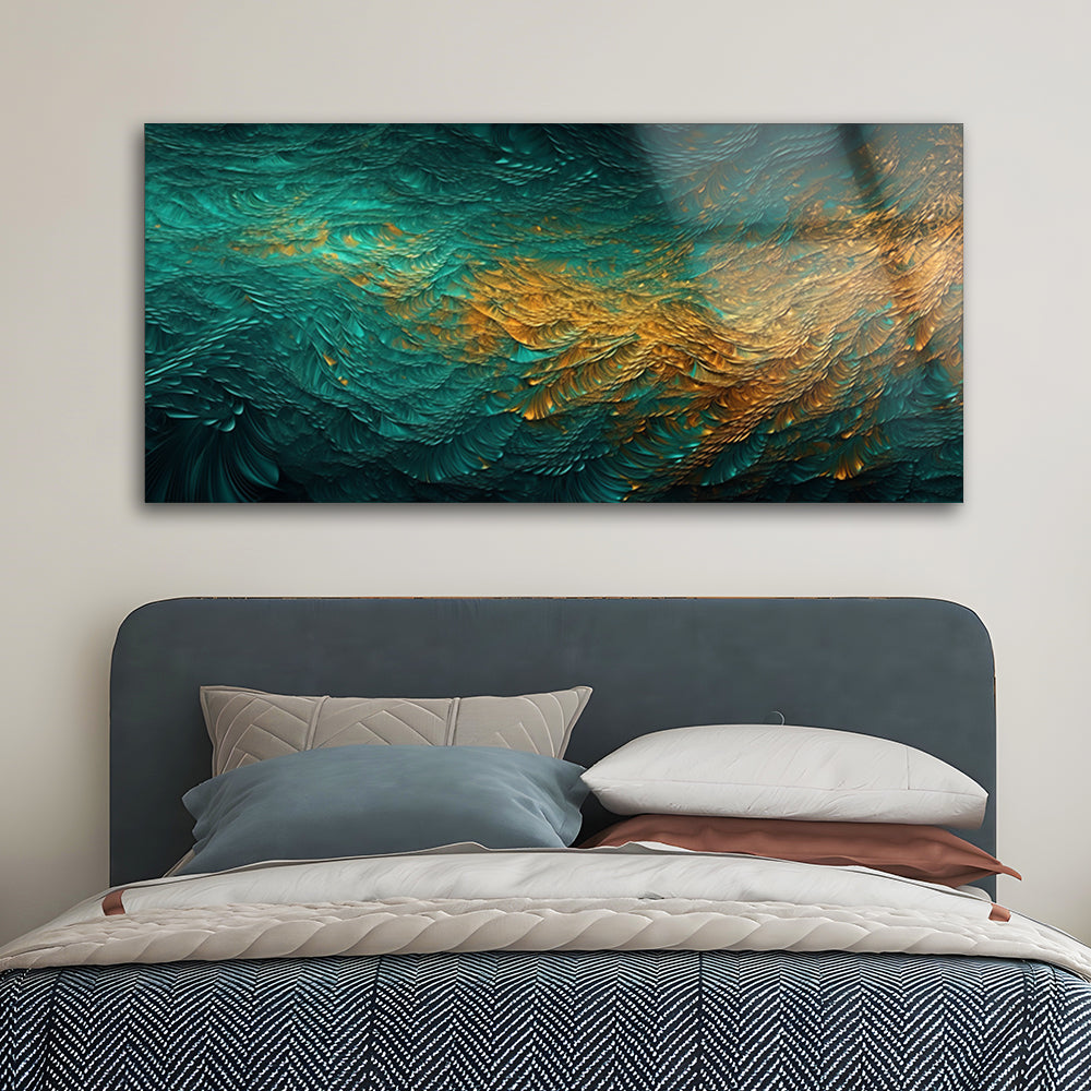 Dive into the depths of chromatic abstraction with this tempered glass painting. Its bold colors and abstract forms evoke a sense of dynamism and creativity, inviting you to interpret its vibrant composition in your own unique way. Add a touch of artistic intrigue to your space with this captivating artwork.