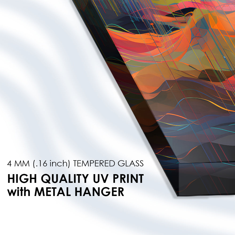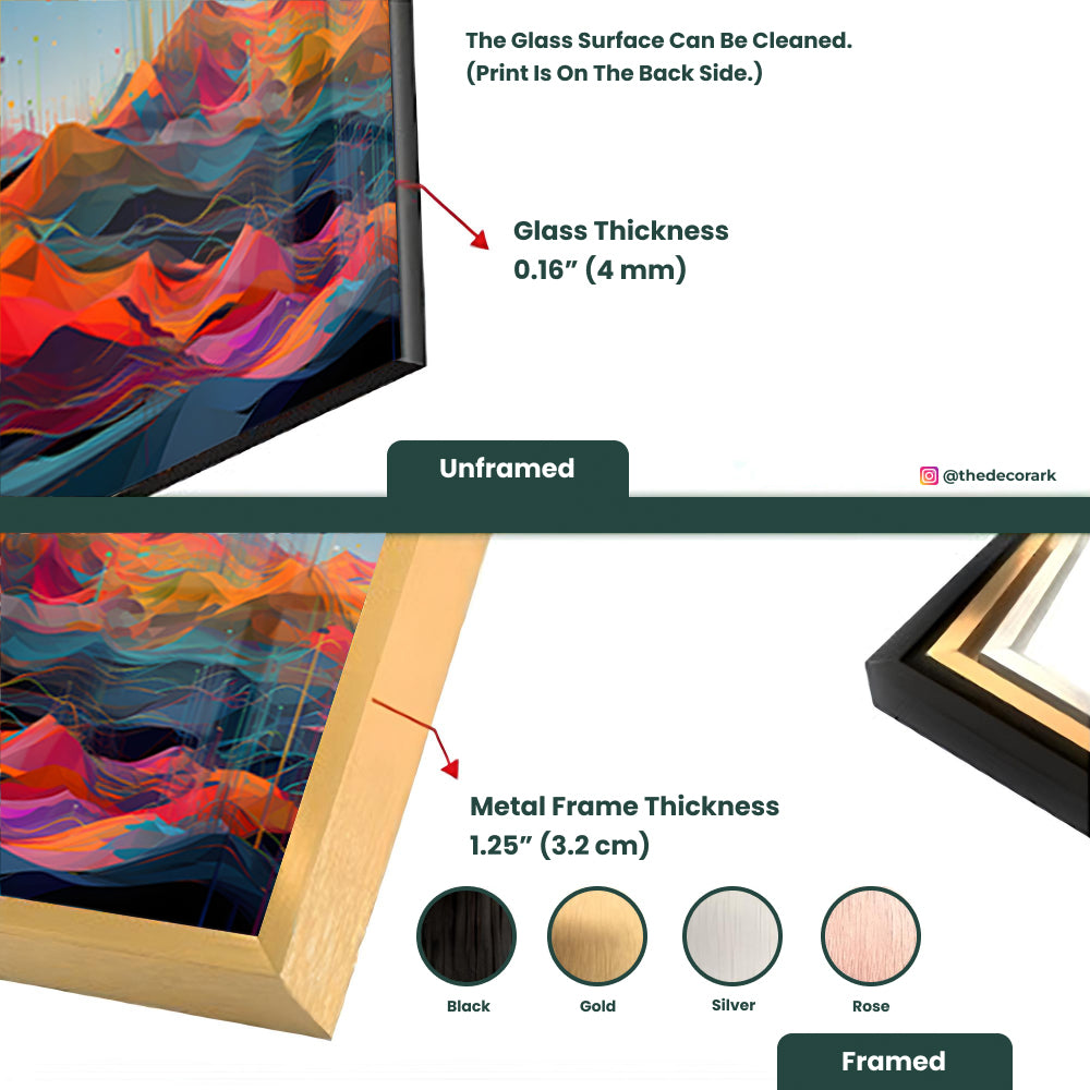 Experience the vibrancy of chromatic creation with this tempered glass artistic painting. Its dynamic composition and bold colors create a sense of energy and excitement, adding a bold statement to any room. Let the colorful palette in this artwork invigorate your space with its lively presence.
