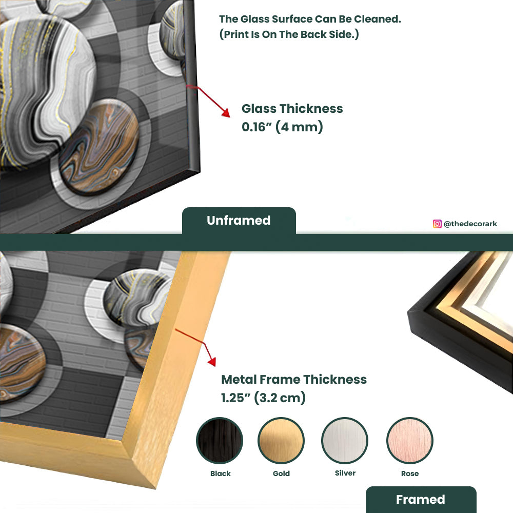 Add a touch of elegance to your space with this tempered glass wall art featuring circular marbles. Its intricate design and sleek lines create a sense of sophistication and style, adding a touch of modern elegance to any room. Let the timeless allure of this artwork elevate your decor with its understated charm.