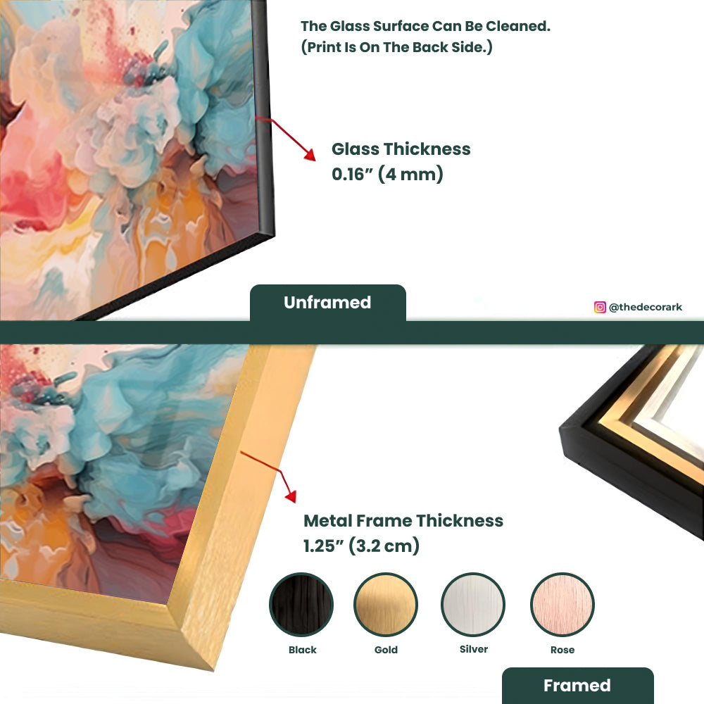 Experience a colorful abstract melody with this tempered glass abstract painting art. Its harmonious blend of hues and dynamic composition evoke a sense of rhythm and movement, stimulating the senses and sparking creativity. Let the vibrant energy of this artwork inspire your space with its joyful presence.