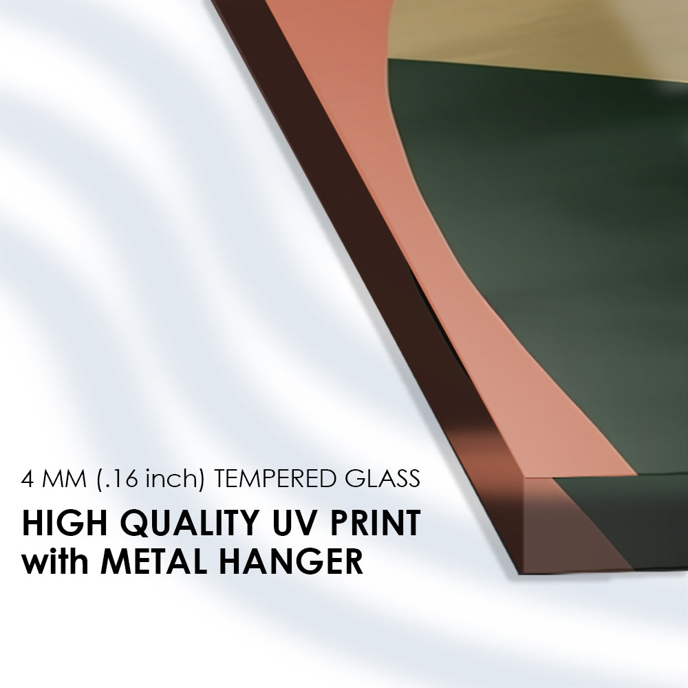 Add a pop of color and geometric flair to your space with this tempered glass artwork featuring colorful shapes. Its playful design and vibrant hues create a sense of movement and fun, adding a touch of modern charm to any room. Let the dynamic composition of this artwork enhance your decor with its contemporary style.