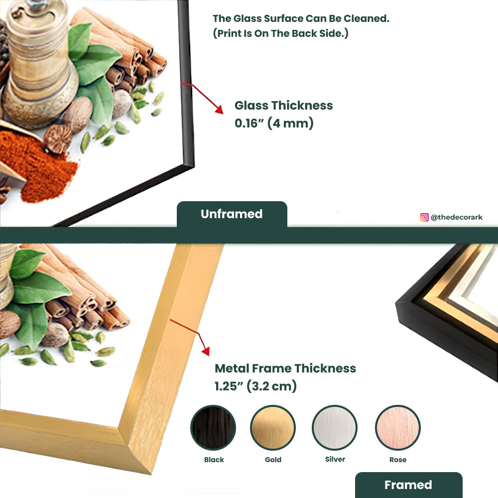 Immerse yourself in the enchanting world of spices with "Enchanting Kerala Spices Unveiled: Tempered Glass Culinary Showcase." This tempered glass creation showcases a captivating array of Kerala spices, creating a visual symphony of culinary richness. The intricate detailing and vibrant colors make it a charming addition to your kitchen decor. Elevate your culinary space with this tempered glass showcase that unveils the beauty and diversity of Kerala spices in an enchanting display.