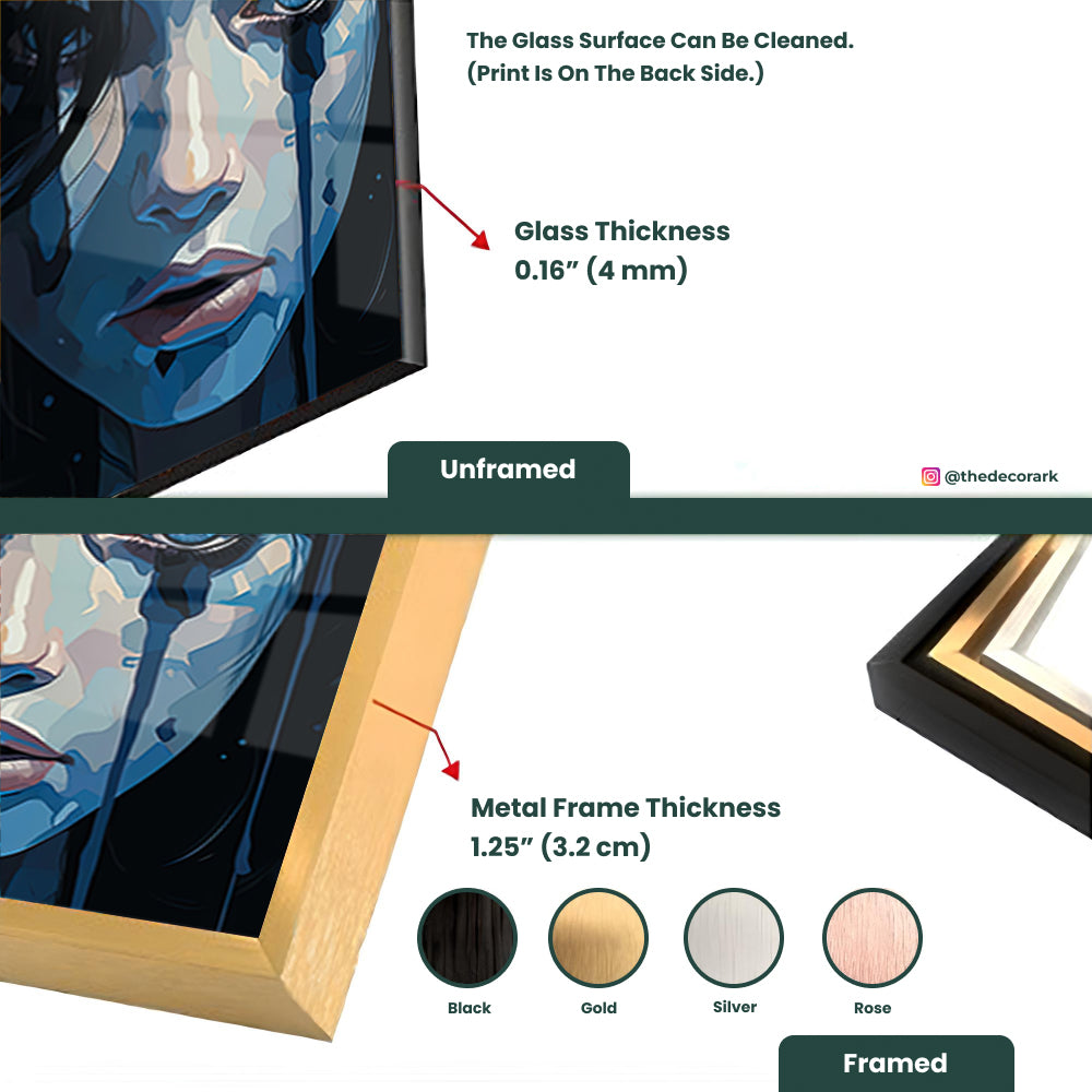Explore the enigmatic allure of human expression with this tempered glass portrait art. Its captivating gaze and intricate details evoke a sense of mystery and intrigue, inviting you to contemplate the depths of the human soul. Add a touch of emotional resonance to your space with this mesmerizing artwork.