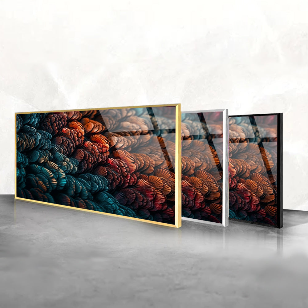 Revel in the vibrant beauty of feathers with this tempered glass feather art. Its intricate details and radiant hues evoke a sense of natural elegance and grace, inviting you to appreciate the delicate intricacies of avian plumage. Add a touch of ornithological splendor to your space with this captivating artwork.