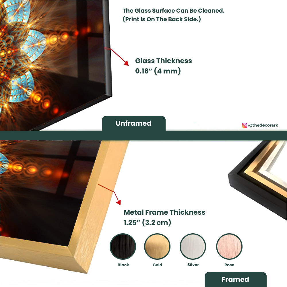 Immerse your space in the "Fractal Flower Symphony," a colorful abstraction on tempered glass. The intricate patterns and vibrant colors create a visual symphony of natural beauty. Elevate your decor with this unique piece that brings the complexity and elegance of fractals into your living space.