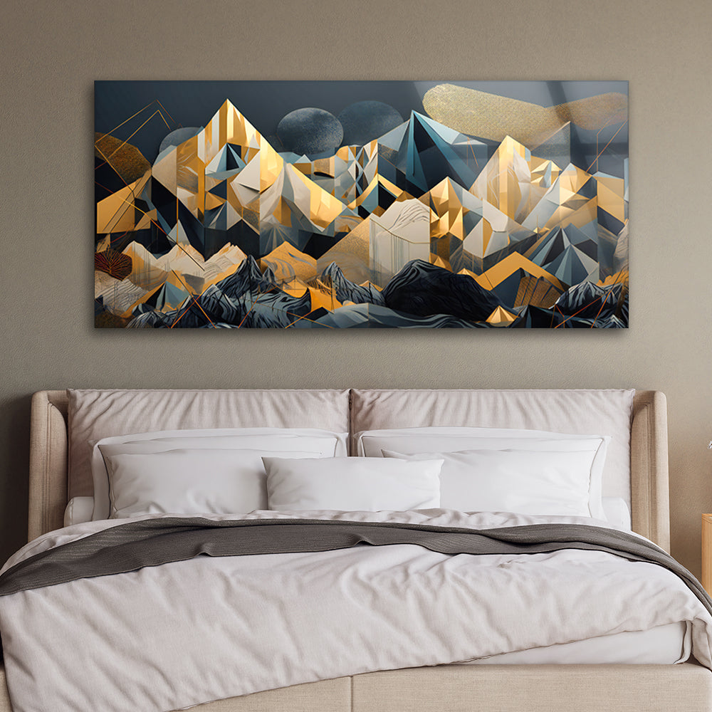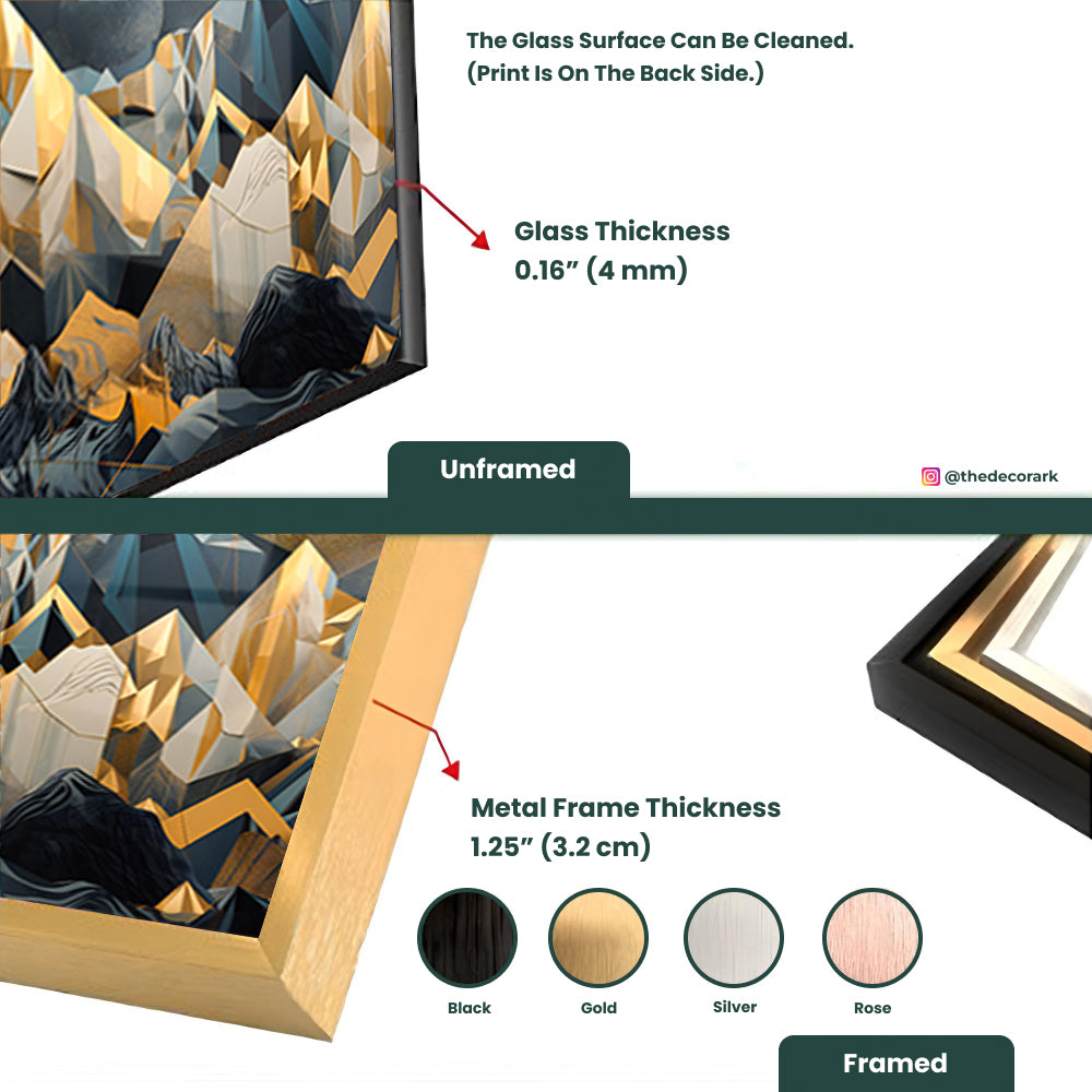 Experience the beauty of geometric harmony with this tempered glass artwork. Its balanced composition and intricate patterns create a sense of order and symmetry, adding a touch of modern elegance to any space. Let the timeless allure of this artwork elevate your decor with its geometric charm.