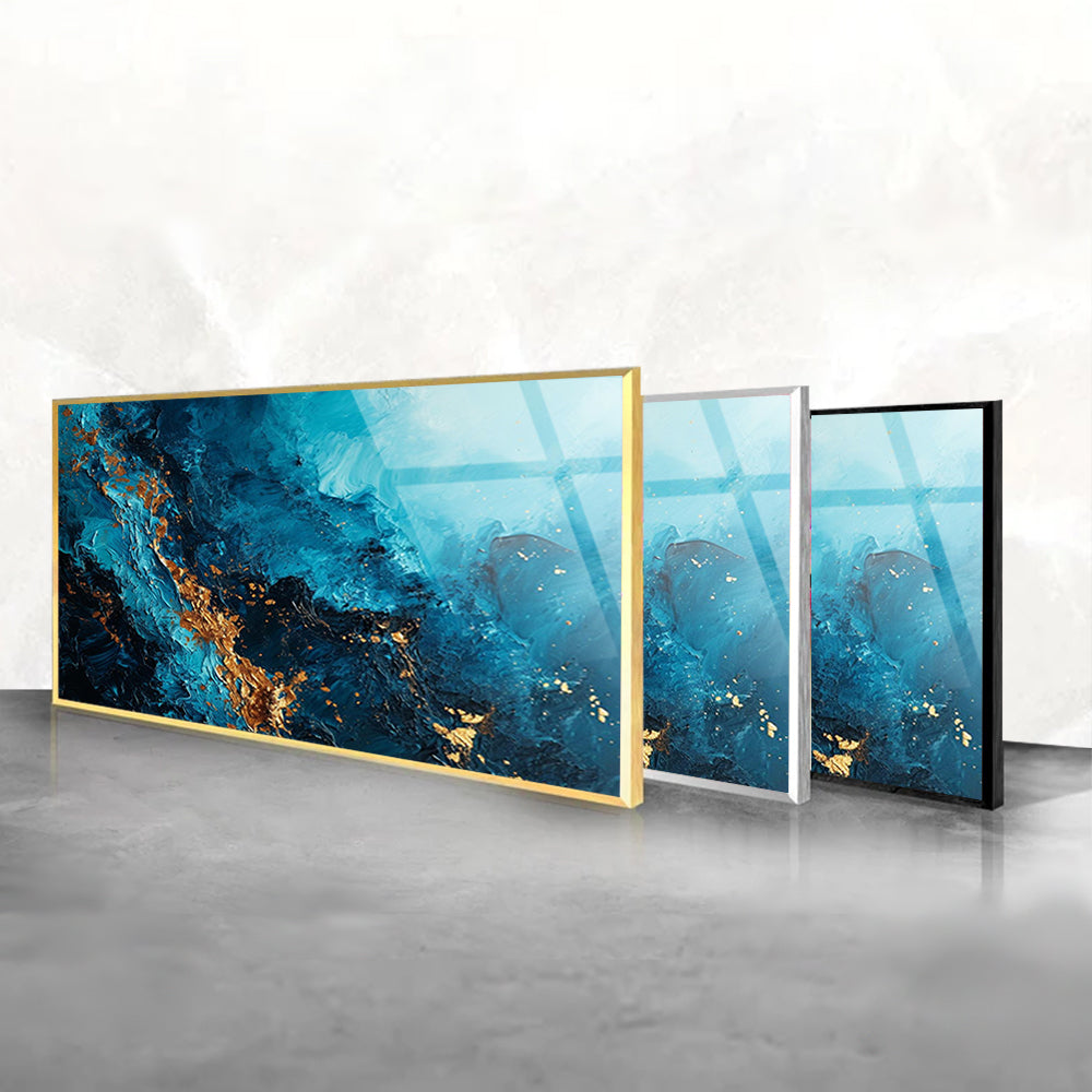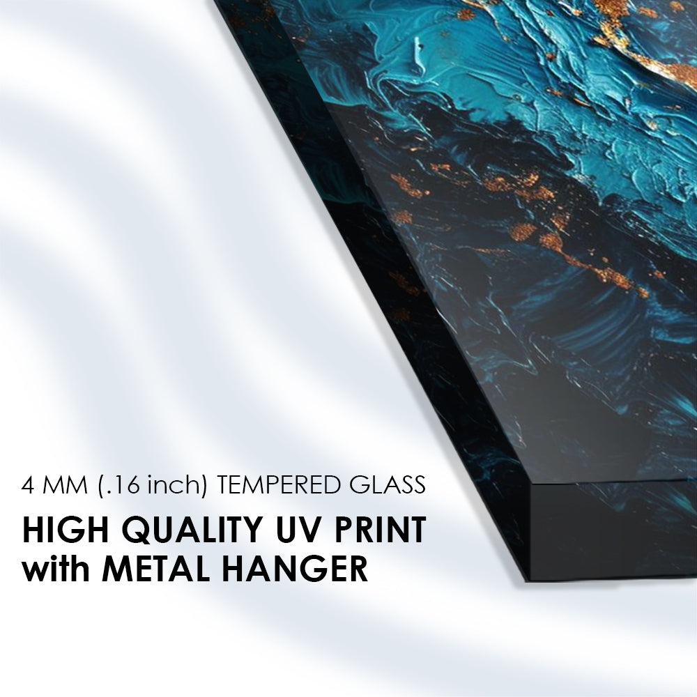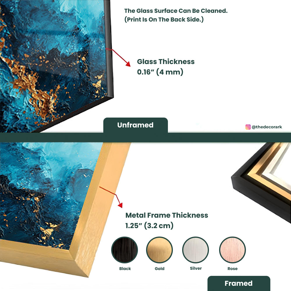 Immerse yourself in the glimmering fusion of colors with this tempered glass artwork. Its dynamic composition and shimmering details create a sense of energy and excitement, adding a bold statement to any room. Let the vibrant palette in this artwork invigorate your space with its lively presence.