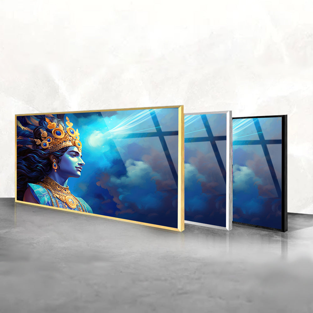 Invite divine artistry into your space with the "Krishna Representation Painting" tempered wall art. This sacred piece beautifully portrays Lord Krishna, radiating a sense of spirituality and devotion. Whether displayed in your prayer room, meditation space, or any area, it brings an aura of divinity and peace to your surroundings.