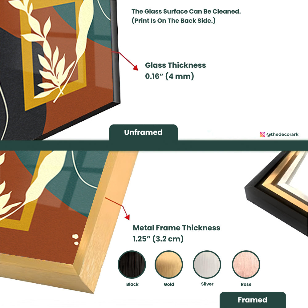 Reflect on nature's beauty with this tempered glass wall art featuring leafy reflections. Its serene composition and natural elements evoke a sense of tranquility and nostalgia, inviting you to escape into the peacefulness of the outdoors. Add a touch of botanical elegance to your space with this captivating artwork.