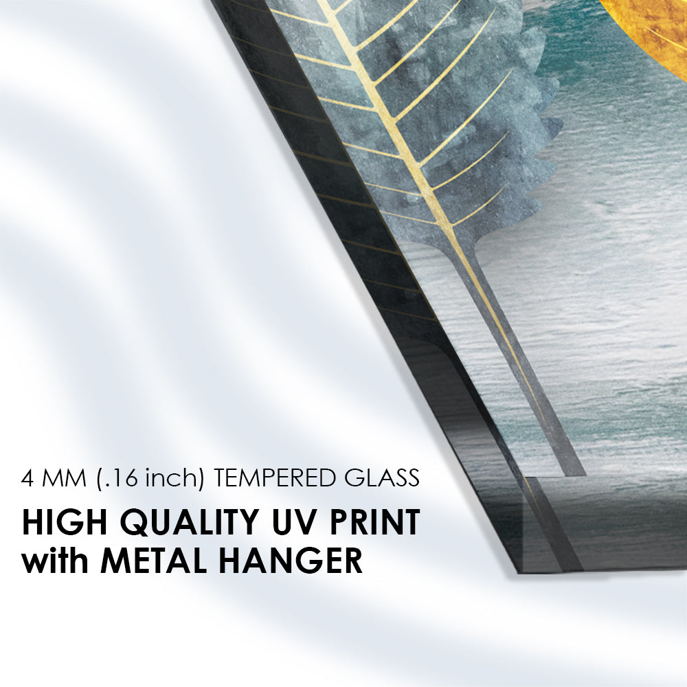 Bring the beauty of nature indoors with this tempered glass art showcasing a modern abstract painting of leaves. Its bold shapes and vibrant colors create a striking visual impact, infusing your space with contemporary elegance and organic charm.