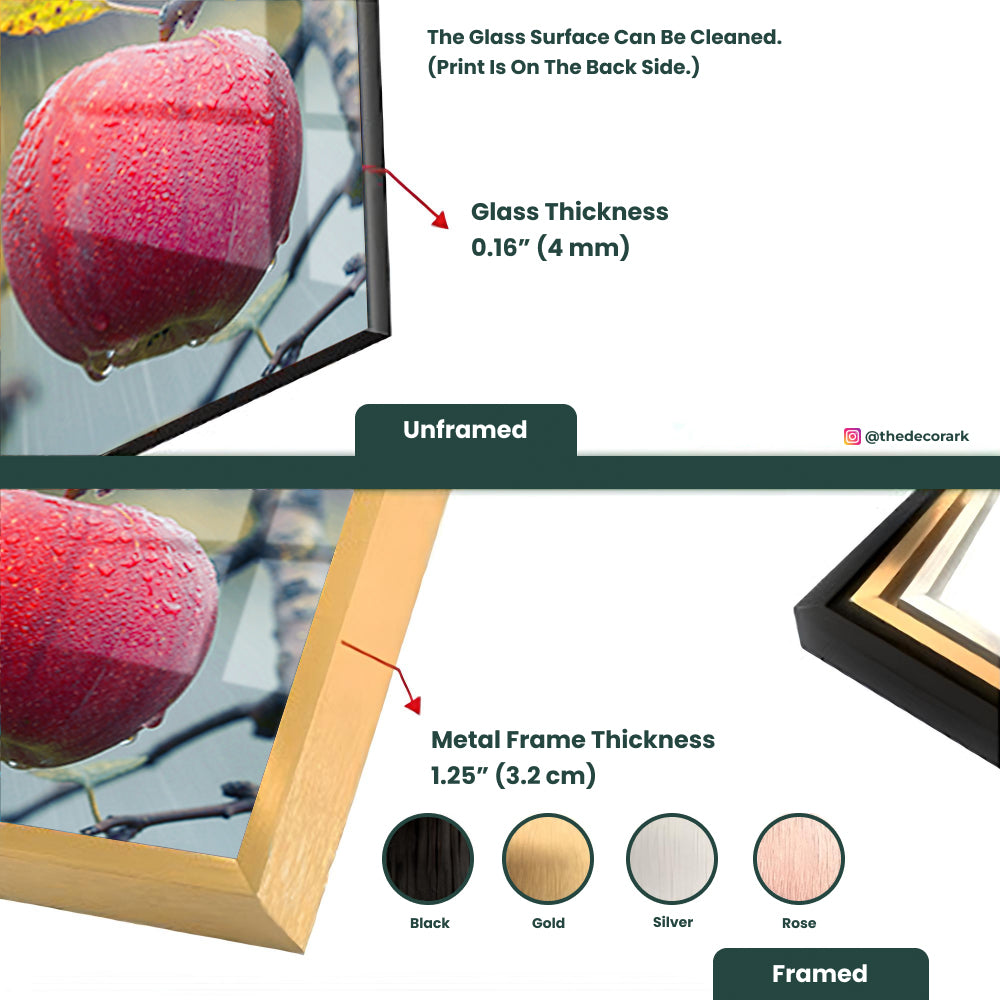 Delight your senses with the freshness of "Morning Dew and Apple Delight: Glass Art." This tempered glass creation encapsulates the glistening morning dewdrops on ripe apples, creating a visual symphony of nature's purity. The exquisite detailing and vivid colors make this glass art a captivating addition to any space. Infuse your surroundings with the crisp and invigorating aura of morning dew and the sweetness of apple delight.