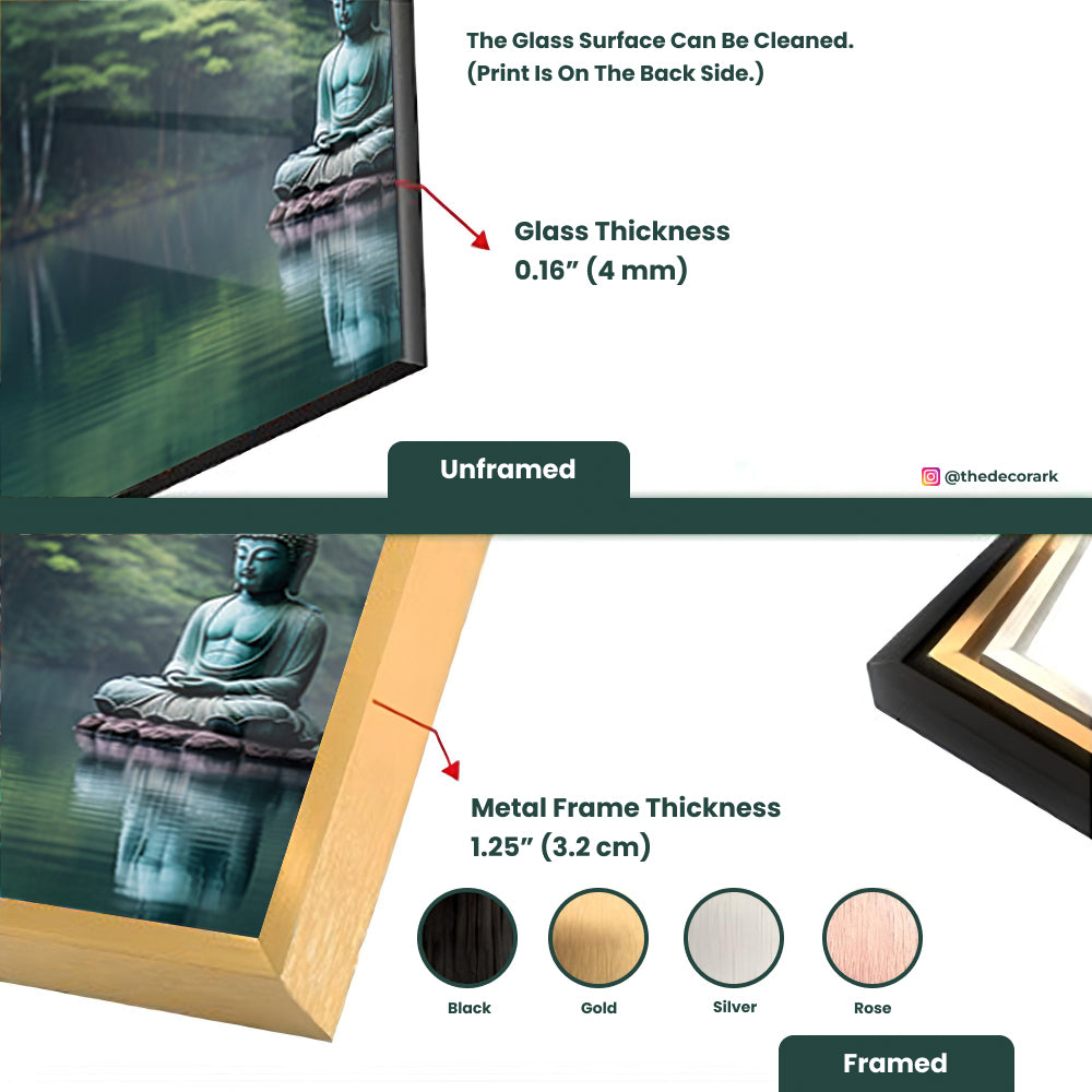 Embrace the serenity of nature with this tempered glass Buddha art. Its harmonious composition and serene expression evoke a sense of peace and tranquility, inviting you to connect with the natural world and find inner balance. Add a touch of spiritual harmony to your space with this serene artwork.
