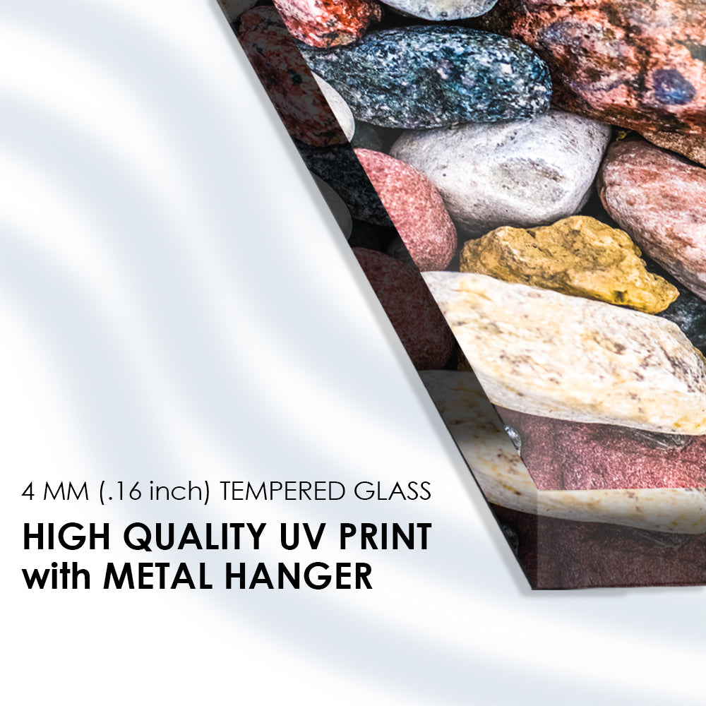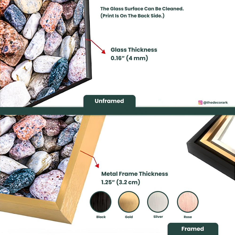 Capture the beauty of nature with "Nature's Patterns Captured," a tempered glass wall art featuring the texture of stone pebbles. The organic patterns and neutral tones create a calming and versatile piece that enhances the natural aesthetic of your space. Elevate your decor with this unique artwork that brings the tranquility of nature into your home.