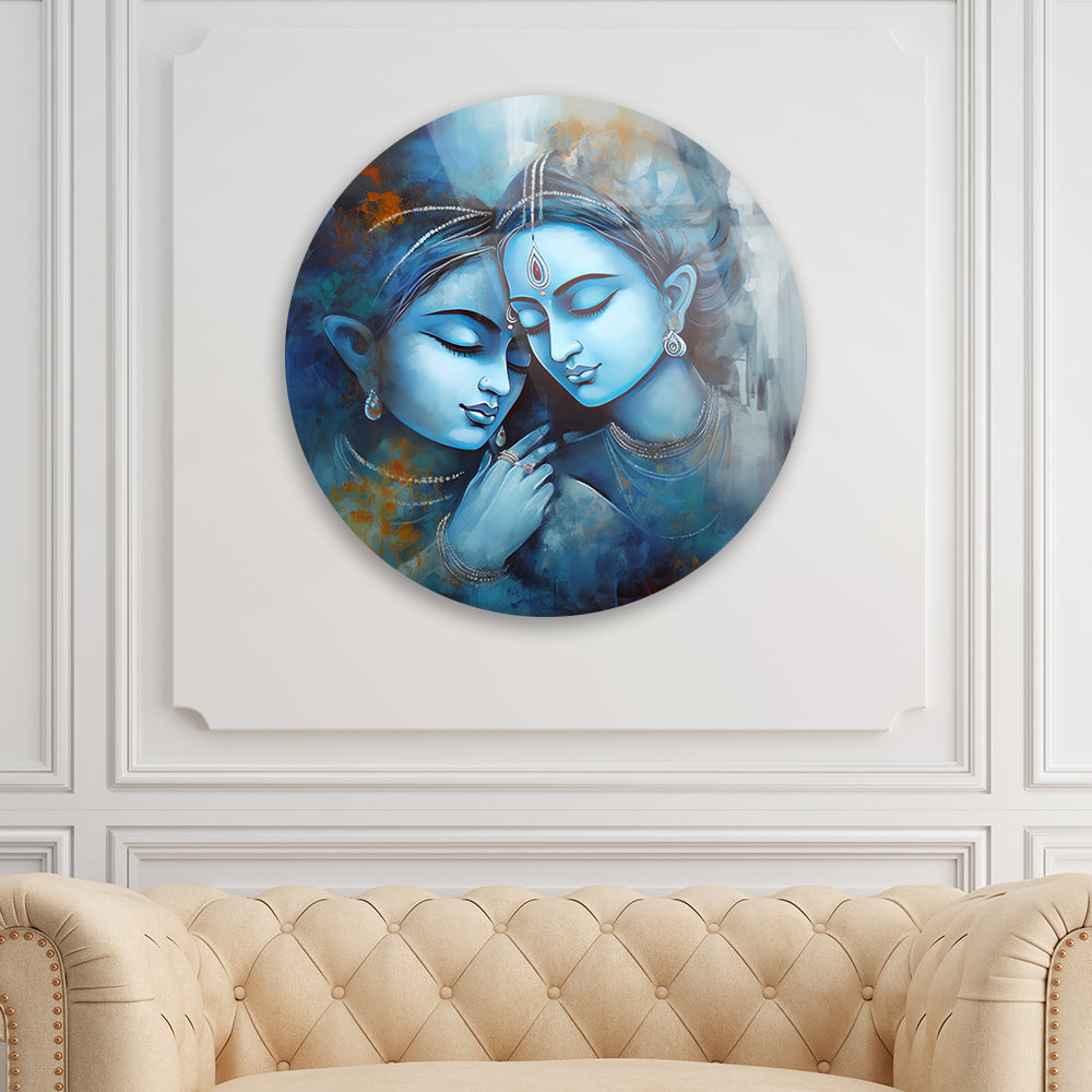 Explore the realm of divine love with this tempered glass piece featuring Radha and Krishna. Its romantic portrayal and artistic aesthetics infuse your space with a sense of eternal love.