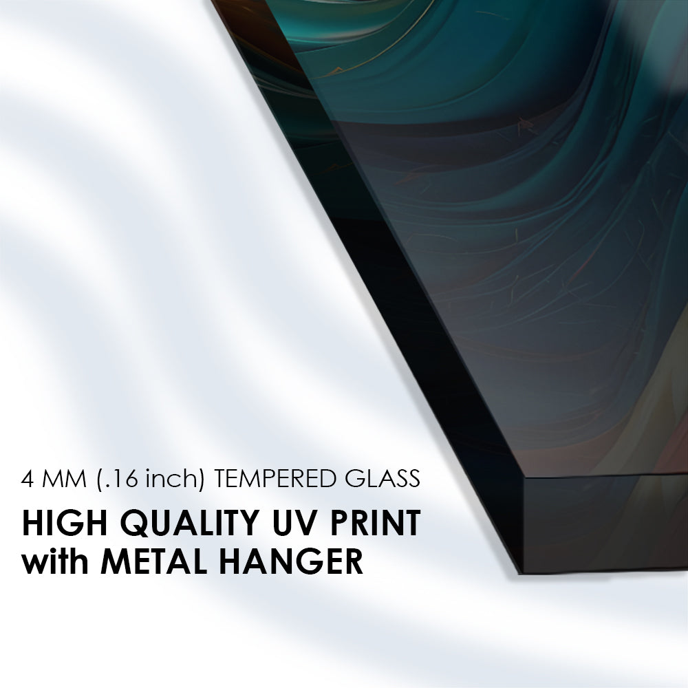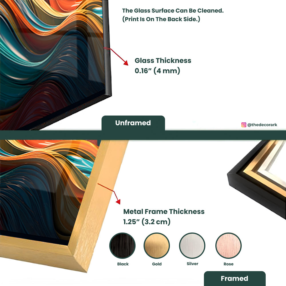 Ride the waves of color and light with this tempered glass art adorned with rainbow waves. Its mesmerizing hues and fluid forms create a joyful and dynamic visual experience, infusing your space with vibrant energy and whimsical charm.