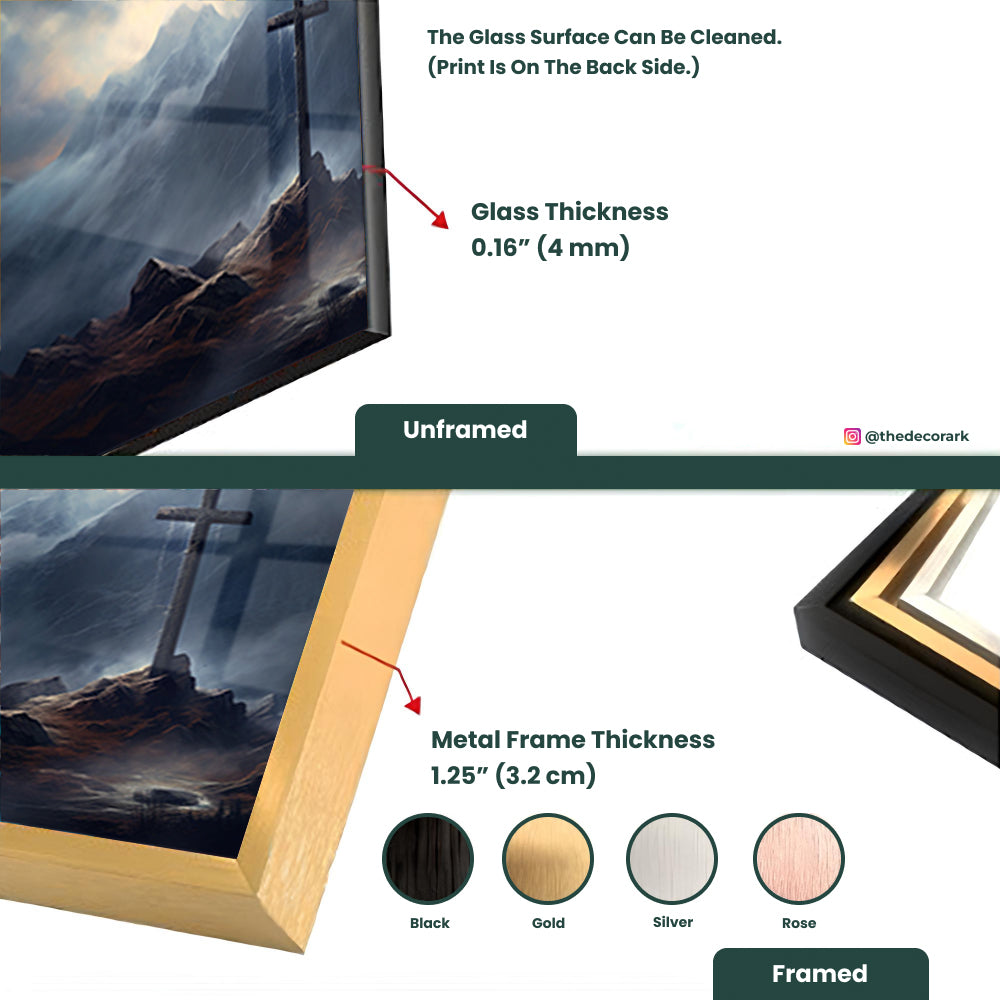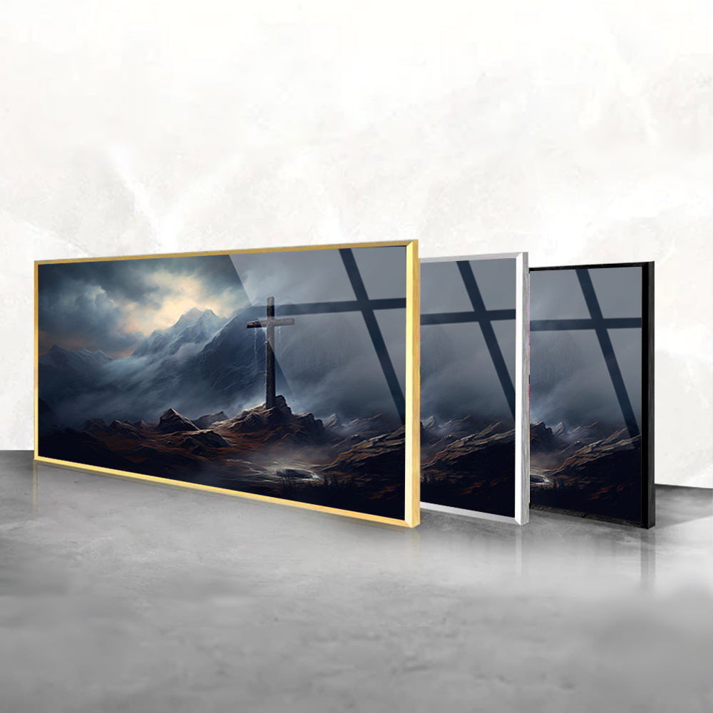 Experience the profound symbolism of faith with the "Religious Cross in Gloomy Weather" tempered wall art. This artwork captures a cross amidst gloomy skies, representing hope and strength in challenging times. Whether displayed in your prayer room, church, or any space, it serves as a source of inspiration and spiritual reflection.