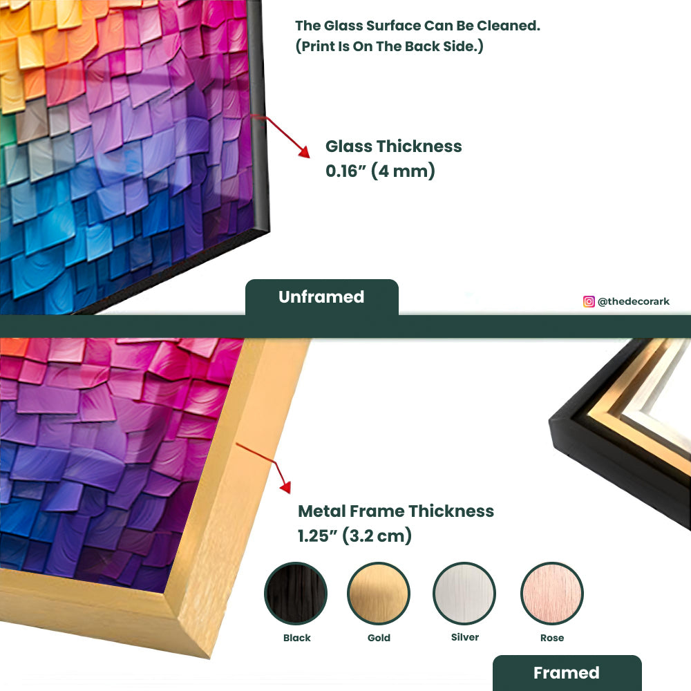 Enchant your walls with the kaleidoscopic beauty of "Swirling Prism," a tempered glass wall art that captures the essence of a swirling prism. Positive vibes emanate from its dynamic composition, turning your home into a decorative haven of vibrant energy. Customizable in size and optionally framed, this piece invites you to add a personalized touch to your space. Easy to clean and maintain, "Swirling Prism" ensures a hassle-free and enjoyable experience, transforming your walls into a canvas of enchanting radiance.