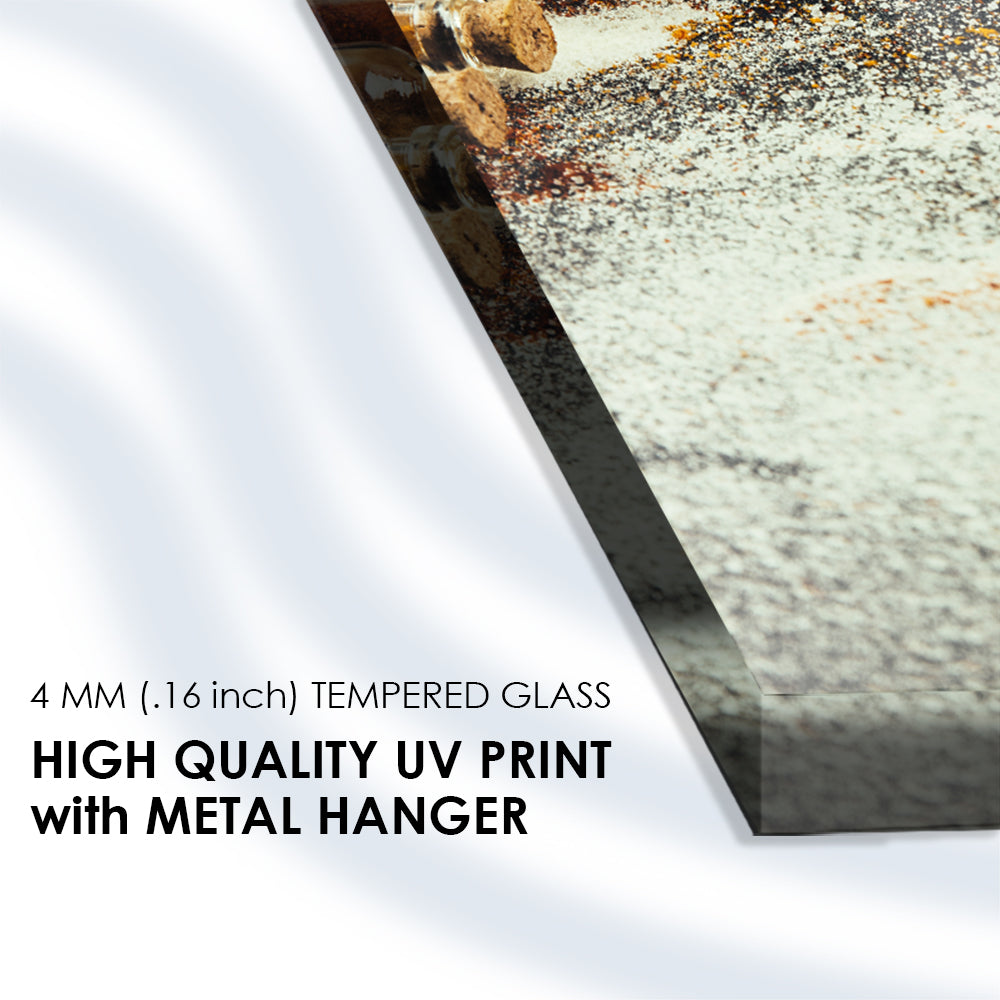 Make a statement in your kitchen with "Tiny Bottles, Big Impact: Tempered Glass Spice Rack Brilliance." This tempered glass creation showcases a collection of tiny spice bottles, creating a visually impactful spice rack display. The dynamic colors and intricate details make it a charming and customizable addition to your kitchen decor. Elevate your cooking area with this tempered glass spice rack that seamlessly blends artistry and functionality, making a big impact on your culinary space.
