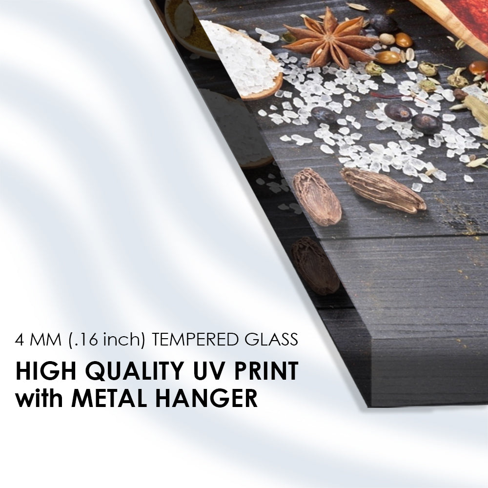 Spice up your kitchen decor with "Traditional & Authentic Spices: Tempered Glass Frame." This tempered glass creation showcases an array of traditional and authentic spices, creating a visual symphony of culinary richness. The meticulous detailing and vibrant colors make it a charming addition to your culinary space. Elevate your kitchen decor with this tempered glass frame that pays homage to the diversity and beauty of traditional spices.