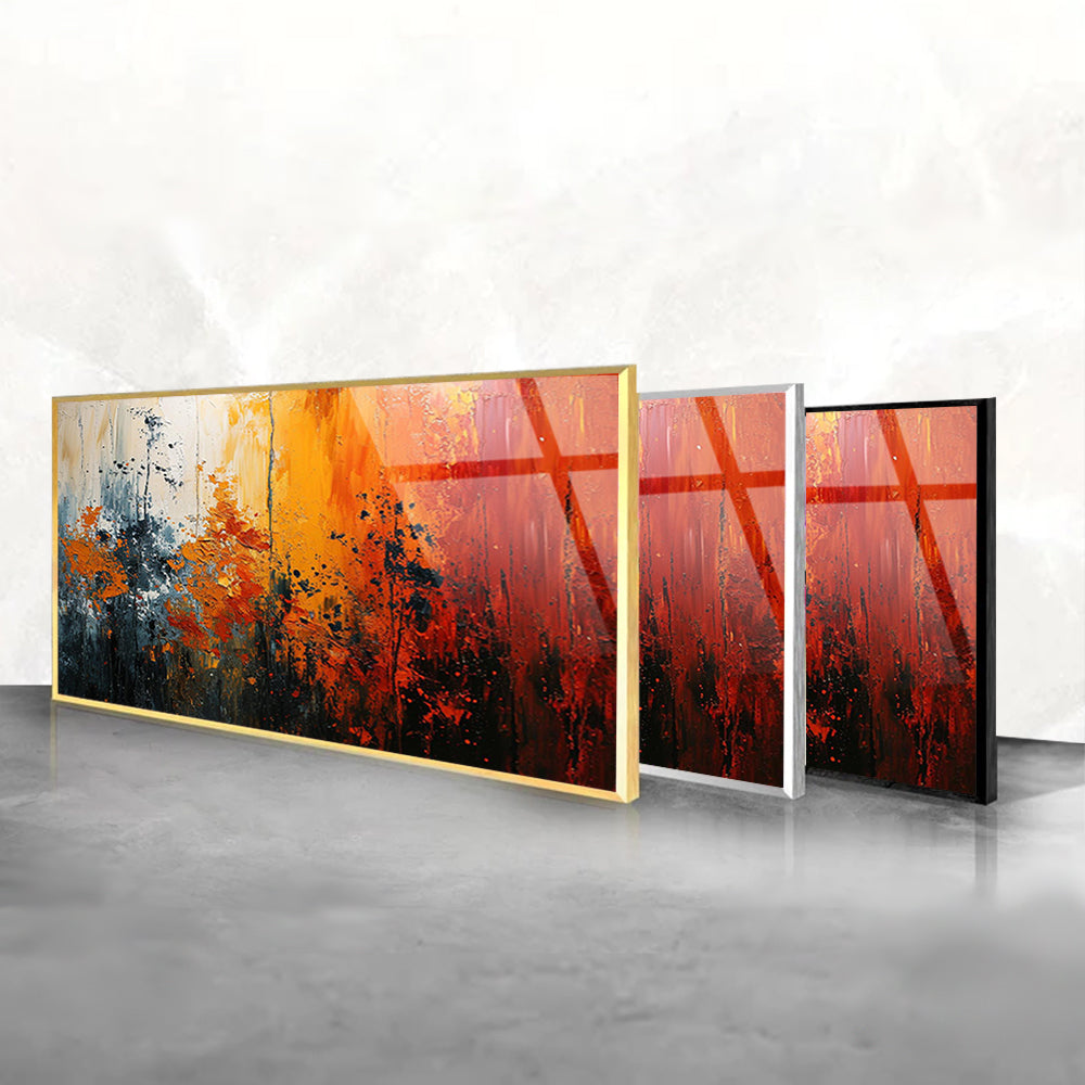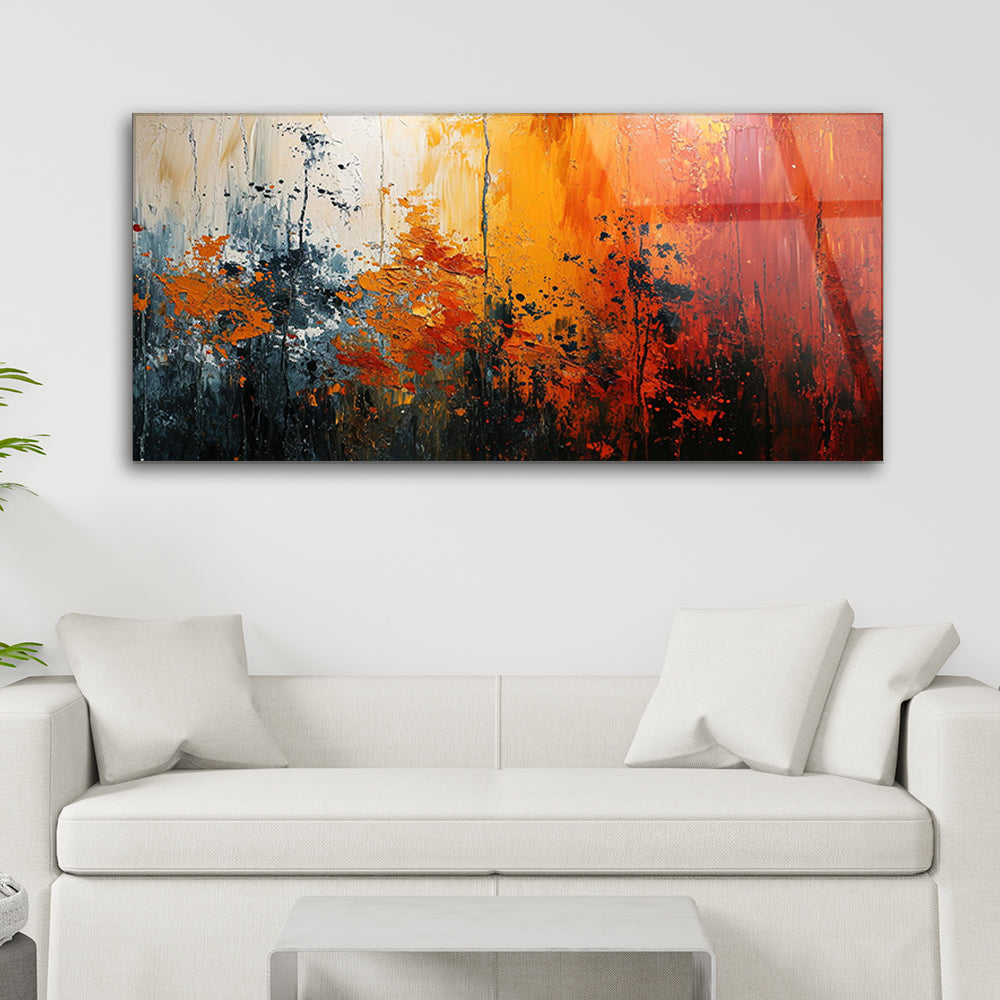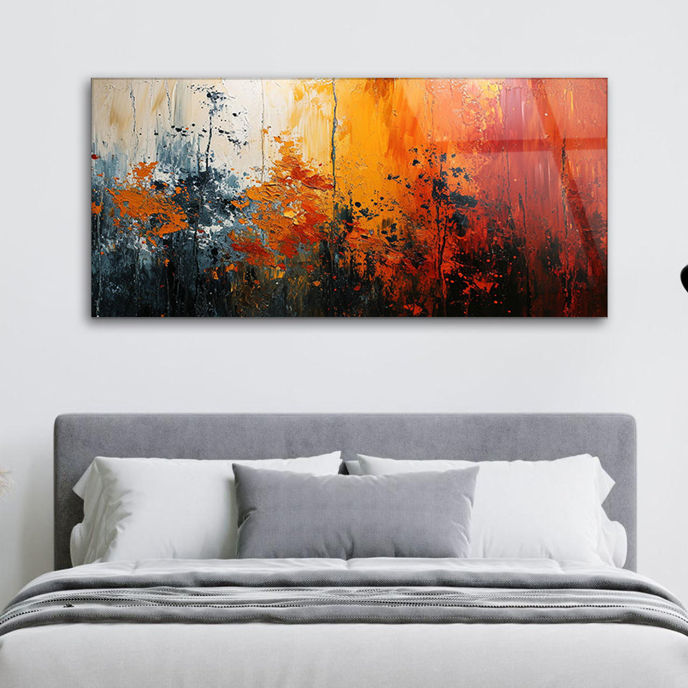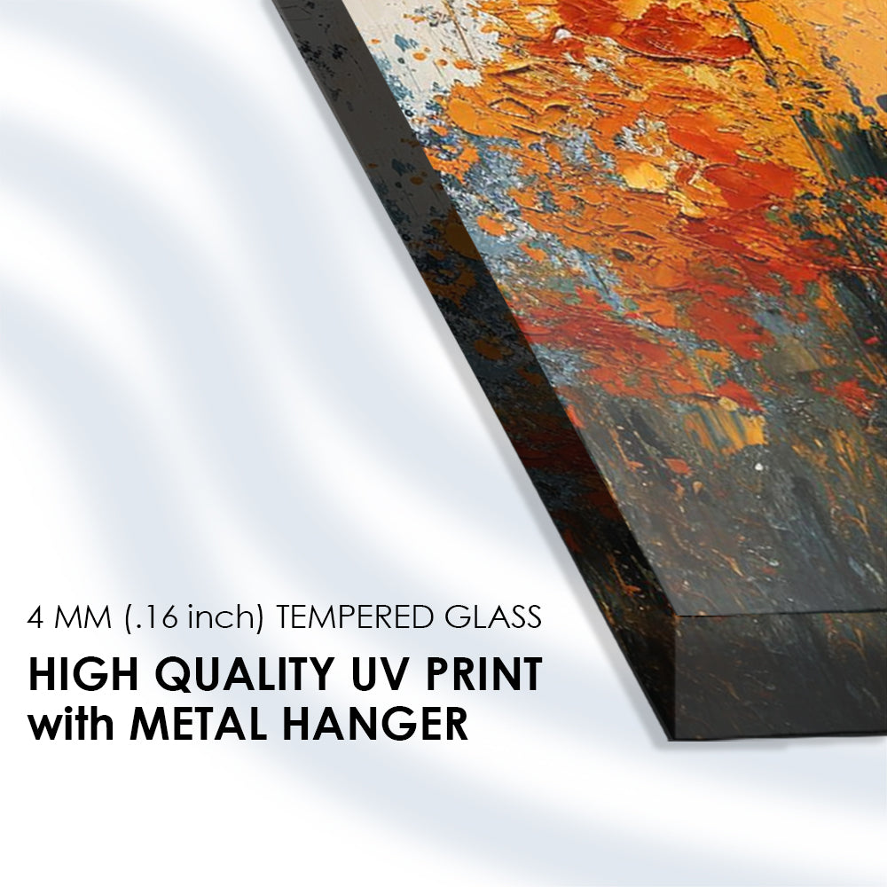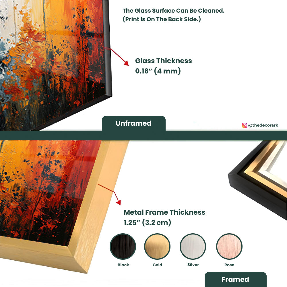 Experience the vibrant fusion of colors with this tempered glass artwork. Its dynamic composition and bold hues create a sense of energy and excitement, adding a bold statement to any room. Let the colorful palette in this artwork invigorate your space with its lively presence.