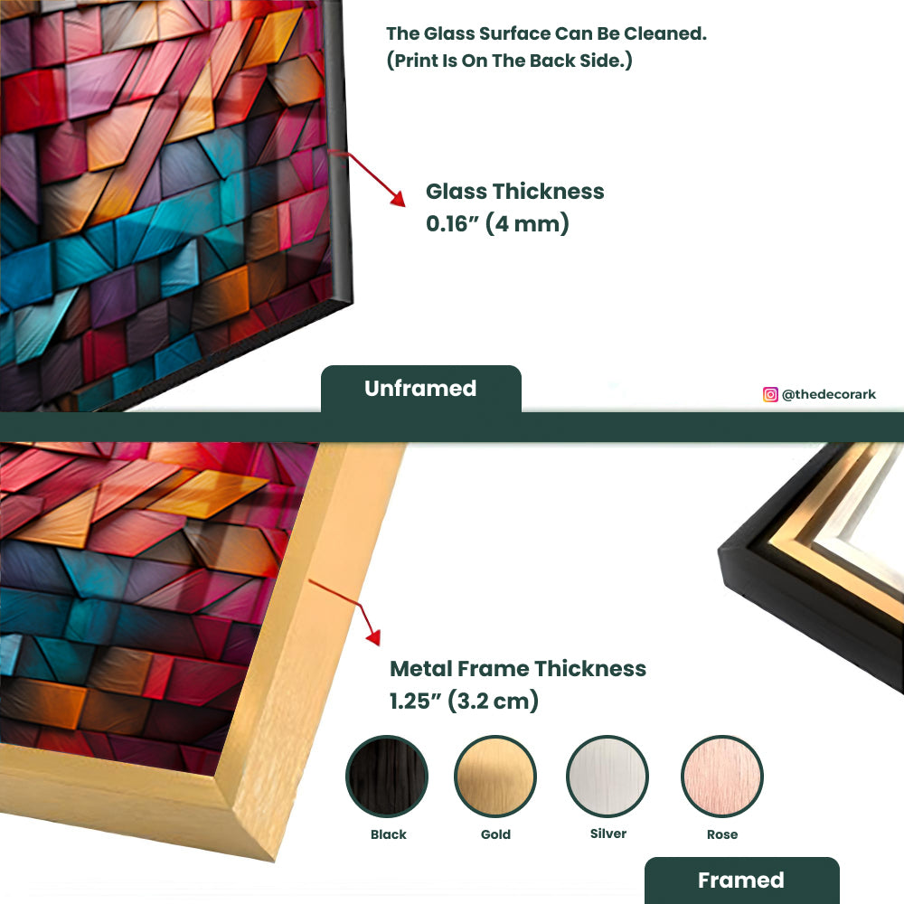 Embark on an odyssey of abstract beauty with "Vibrant Vortex," a tempered glass wall art that captures the essence of a swirling journey. Positive vibes emanate from its vibrant composition, making your home more decorative and visually captivating. Customizable in size and optionally framed, this piece invites you to add a personalized touch to your space. Easy to clean and maintain, "Vibrant Vortex" ensures a hassle-free and enjoyable experience, turning your walls into a canvas of dynamic allure.