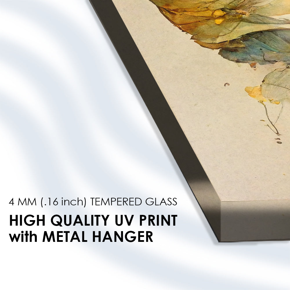 Let your imagination take flight with this tempered glass art showcasing a watercolor oil painting of butterflies in blots and splashes. Its whimsical charm and vibrant colors create a sense of wonder and delight, adding a touch of natural beauty and artistic flair to your decor.